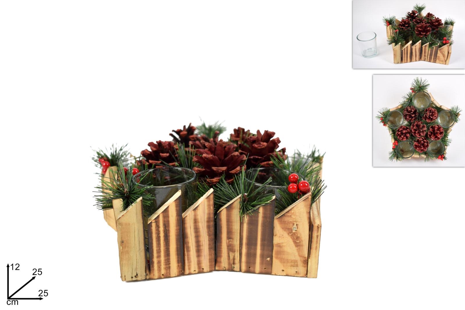 P/CANDELA STELLA LEGNO 5 POSTI C/PIGNE