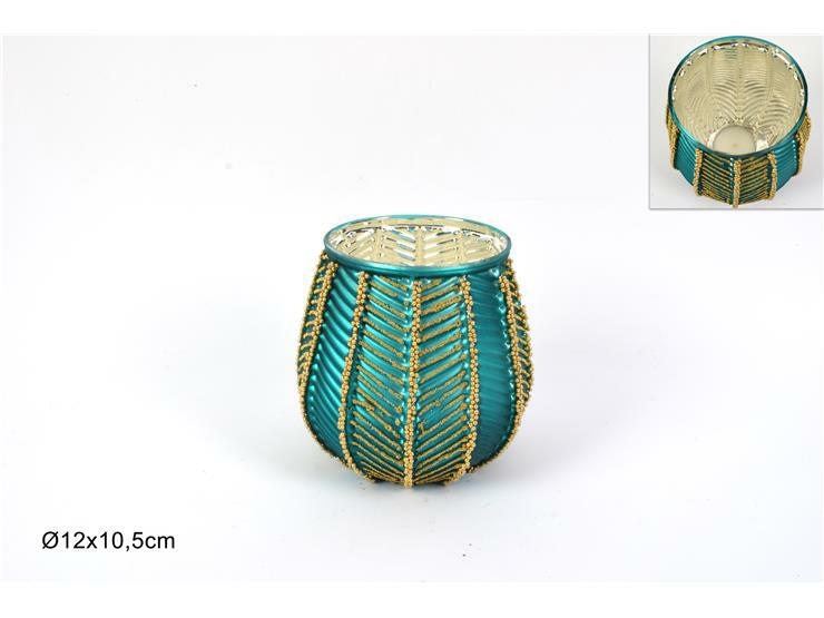 P/CANDELA VETRO VERDE DECORO ORO 12cm