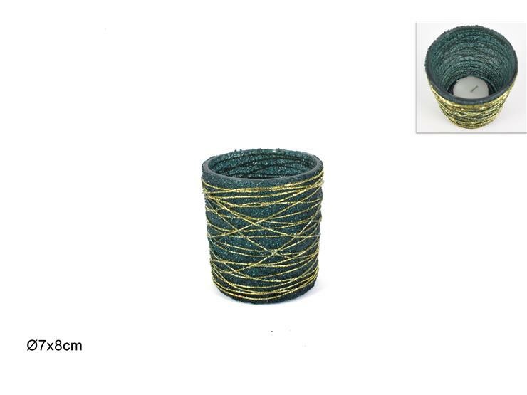 P/CANDELA VETRO VERDE DECORO ORO 7x8cm