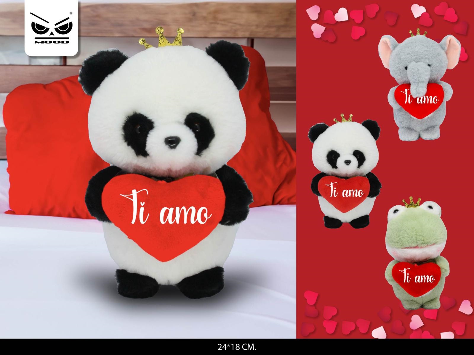 PELUCHE ANIMALE CORONA C/CUORE TI AMO 24cm