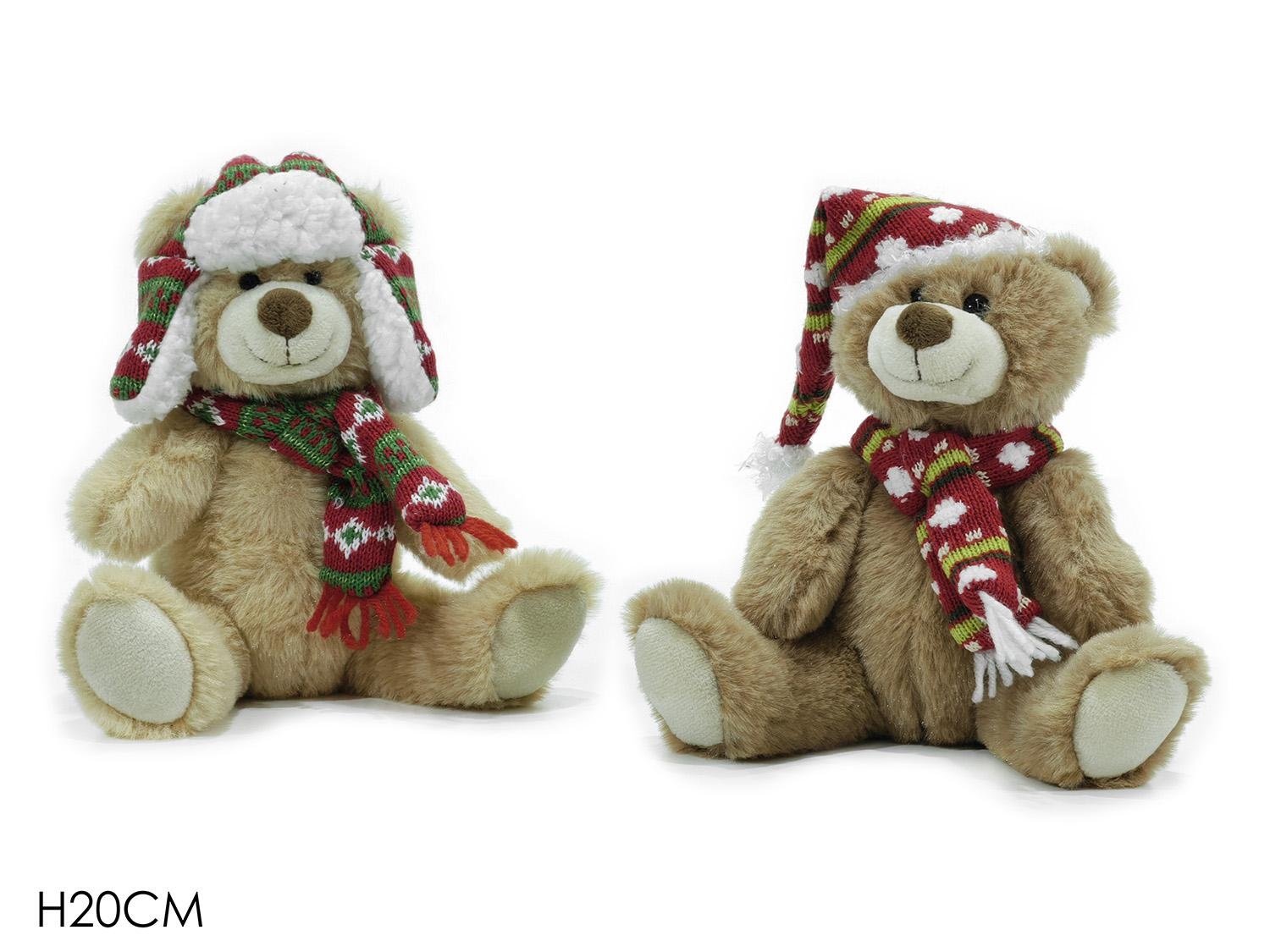 PELUCHE NATALE ORSO C/CAPPELLO E SCIARPA 20cm