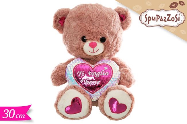 PELUCHE ORSO C/CUORE ROSA TVB 30cm