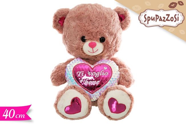 PELUCHE ORSO C/CUORE ROSA TVB 40cm