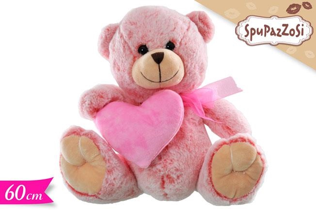 PELUCHE ORSO ROSA C/CUORE 60cm