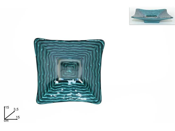 PIATTINO VETRO ONDA 15x15cm VERDE