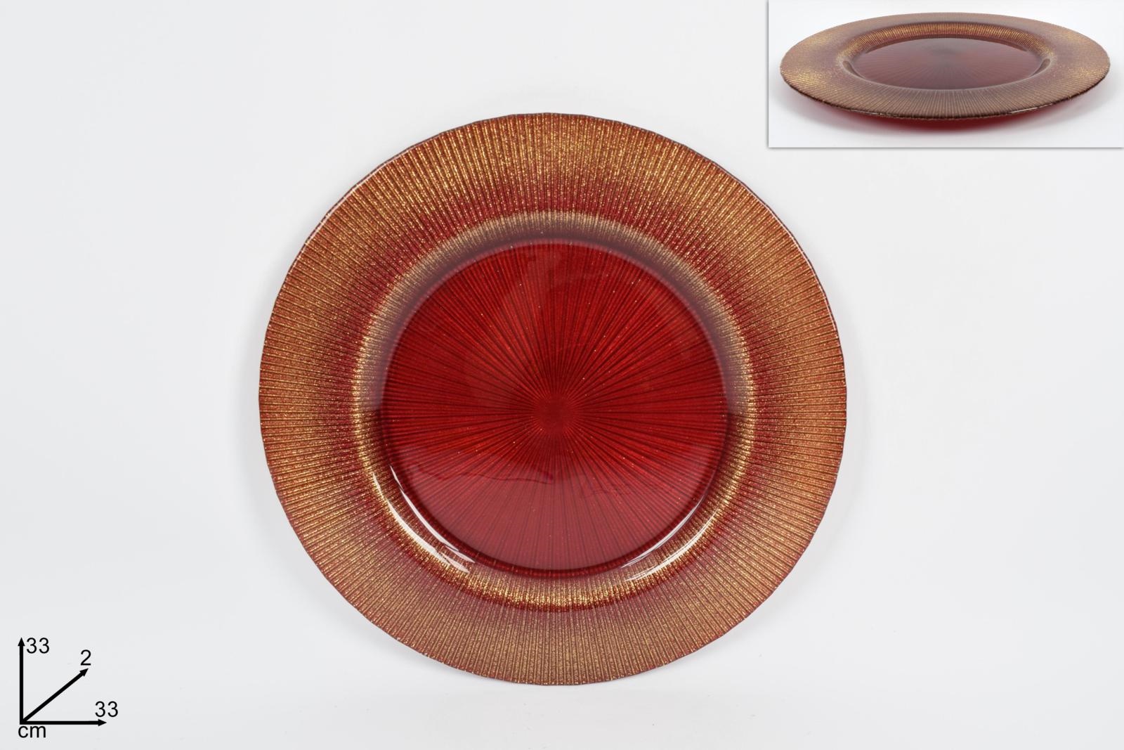 PIATTO 33cm ROSSO GLITTER ORO