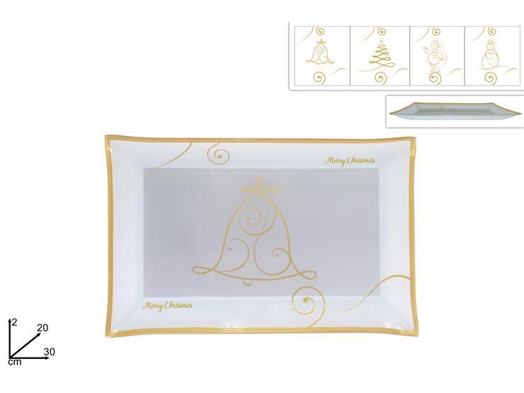PIATTO VETRO BIANCO/ORO 30x20