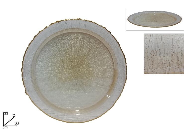 PIATTO VETRO ORO C/BORDO ORO 33cm