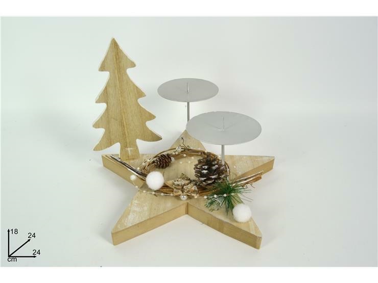PORTACANDELE LEGNO NATALE 2 POSTI