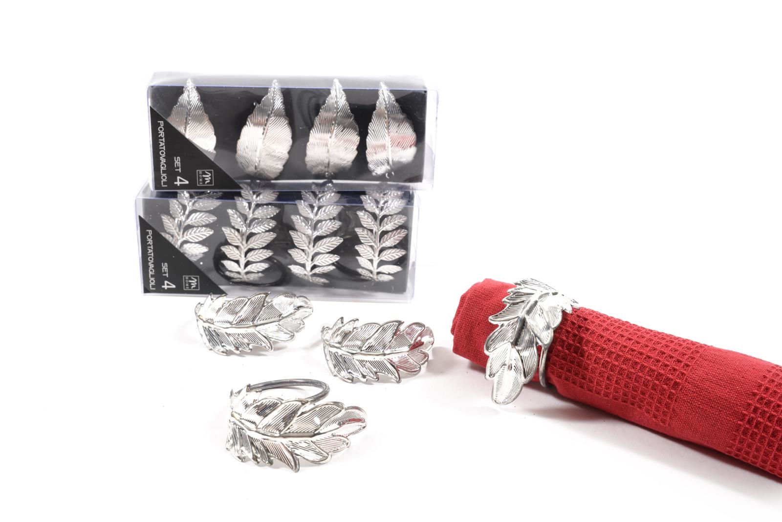 PORTATOVAGLIOLI METALLO FOGLIE ARGENTO 4pz