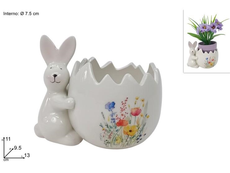 PORTAUOVO/PIANTA C/CONIGLIO CERAMICA 7cm