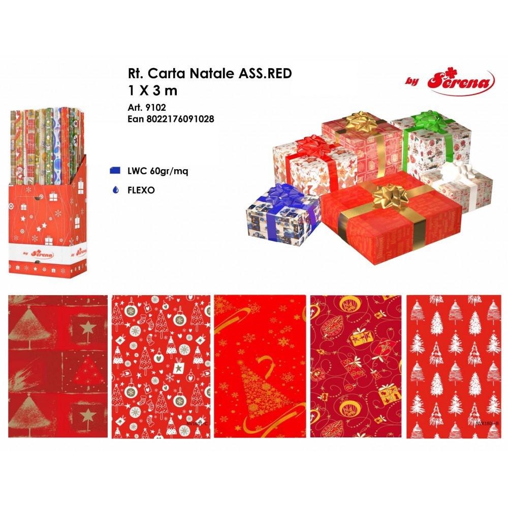 ROTOLO CARTA NATALE 1x3mt ASS.RED