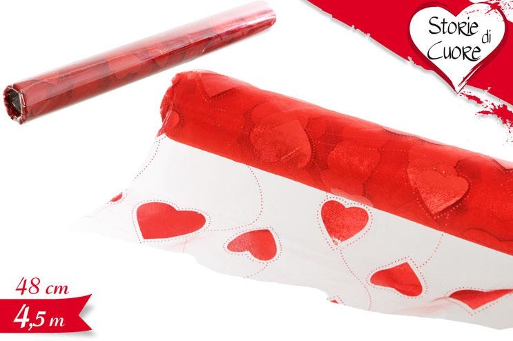 ROTOLO ORGANZA CUORI cm48x4,5mt ROSSO