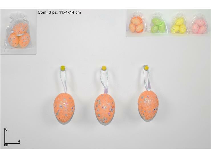 SACCHETTO 3 UOVA 6cm C/PAILLETTES