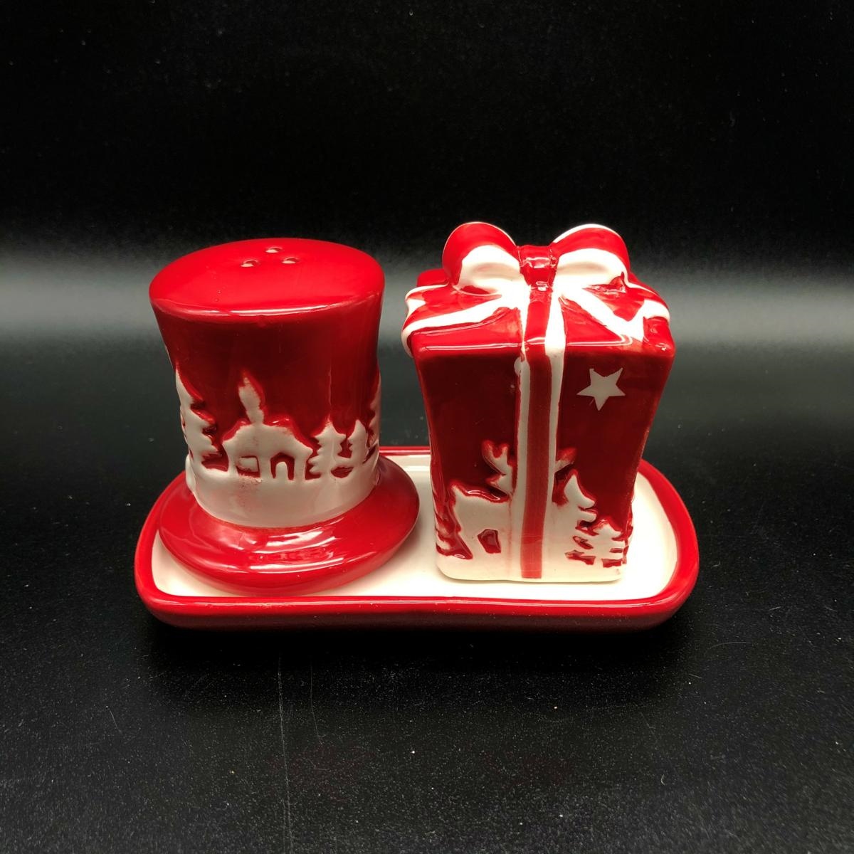SALE E PEPE C/VASSOIETTO DECORAZIONE ROSSO