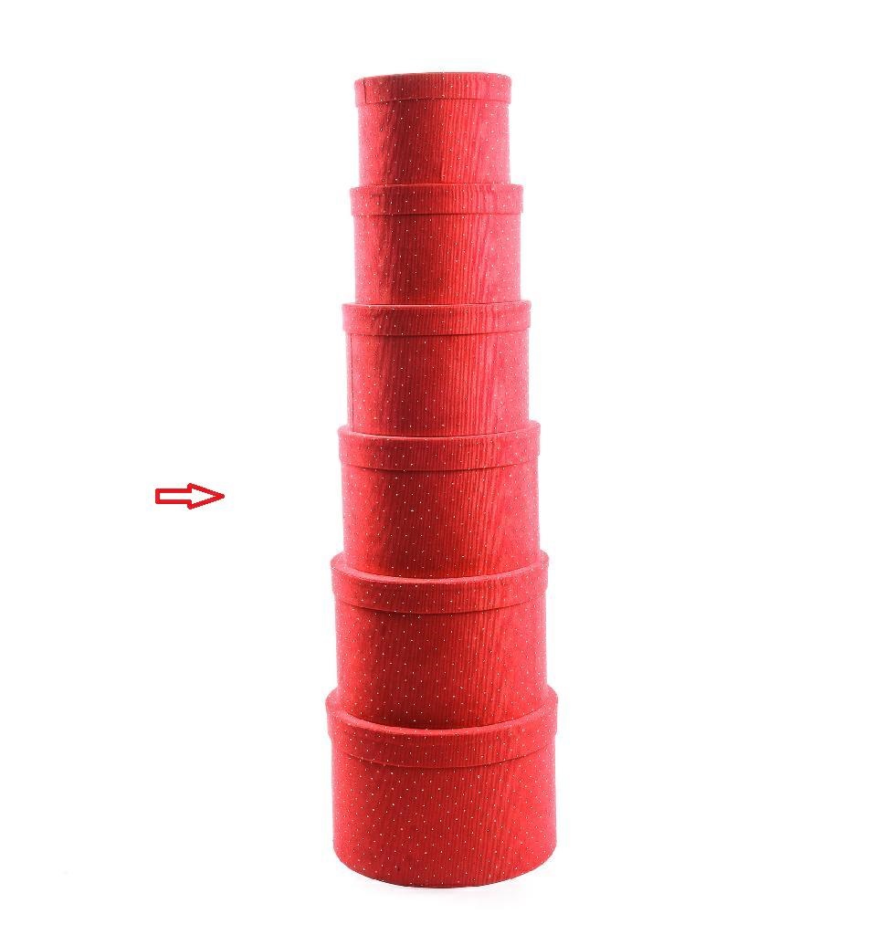 SCATOLA TONDA TESSUTO ROSSO C/BRILLANTINI D.27 H.21