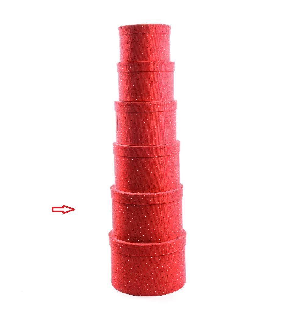 SCATOLA TONDA TESSUTO ROSSO C/BRILLANTINI D.30 H.20