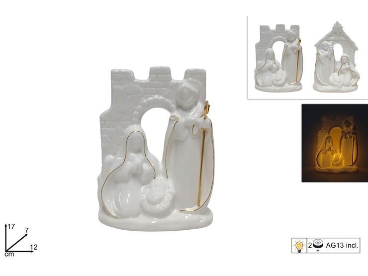 SCENARIO NATIVITA' BIANCA C/DECORO ORO 17cm C/LUCE