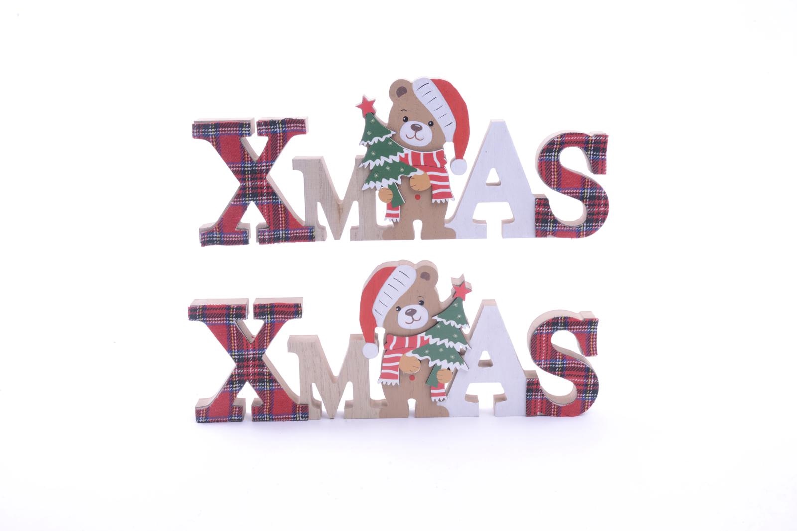 SCRITTA XMAS LEGNO C/ORSETTO 11x29cm