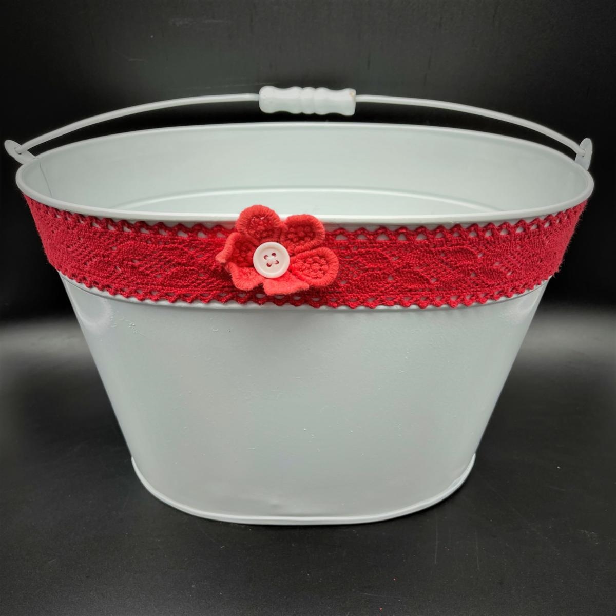 SECCHIO LATTA OVALE BIANCO MERLETTO ROSSO