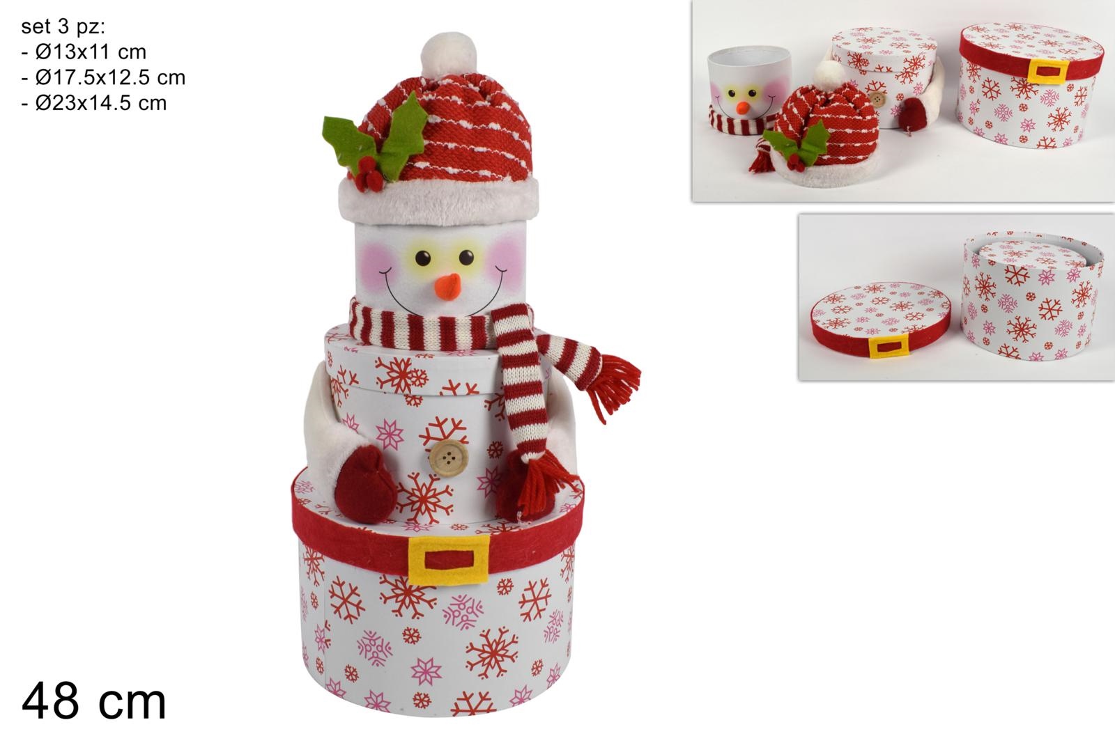 SET 3 SCATOLE NATALE TONDE SNOWMAN