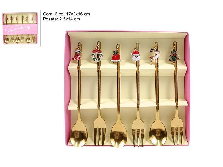 SET 6 CUCCHIAIO O FORCHETTA SEGNAPOSTO IN BOX ORO