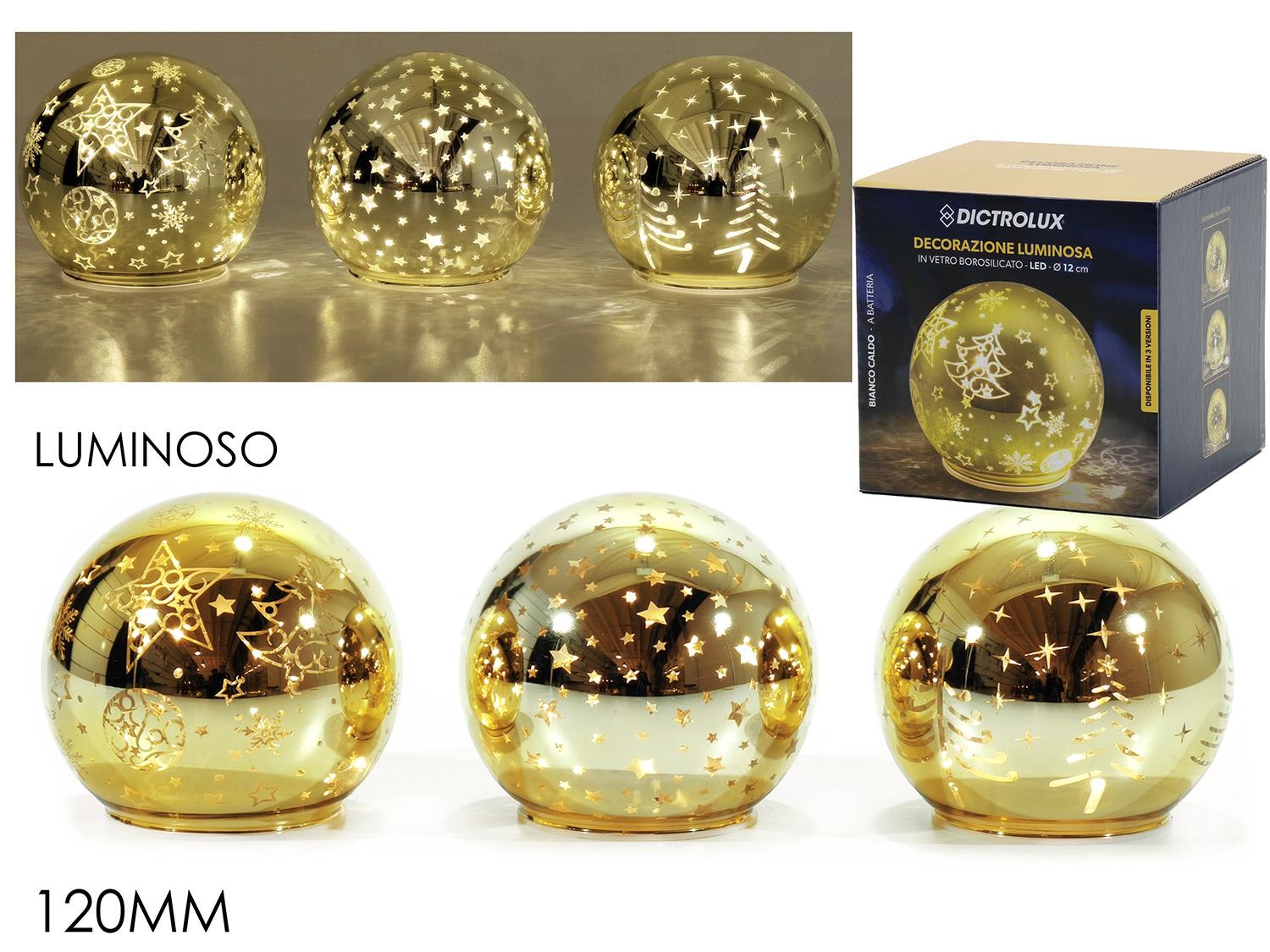 SFERA NATALE C/LUCE ORO 120mm VETRO