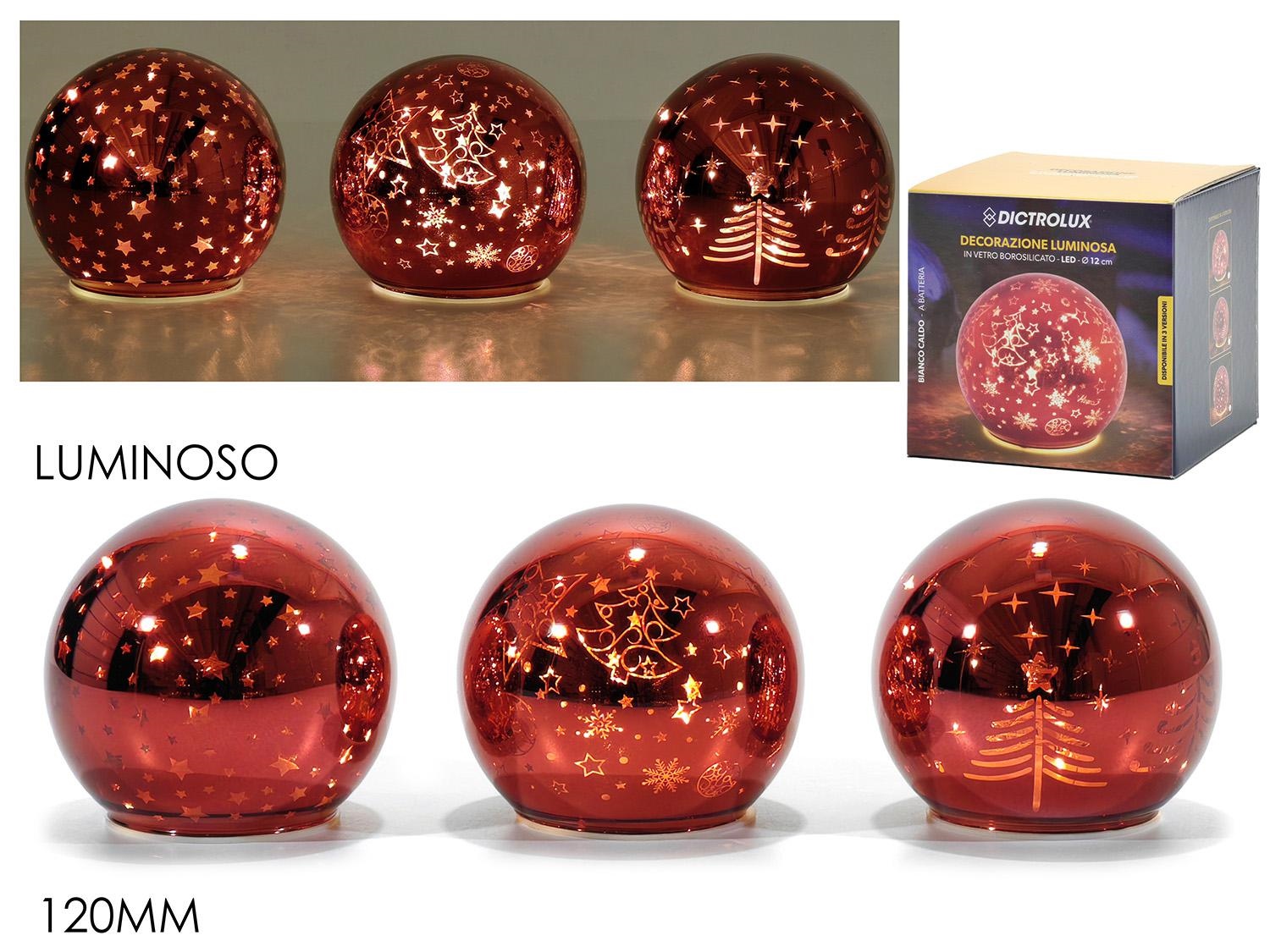 SFERA NATALE C/LUCE ROSSO 120mm VETRO