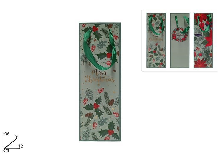 SHOPPER NATALE P/BOTTIGLIA DECORO NATALIZIO 12x36