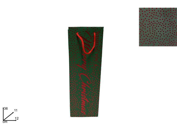 SHOPPER NATALE P/BOTTIGLIA VERDE BORCHIE ROSSE