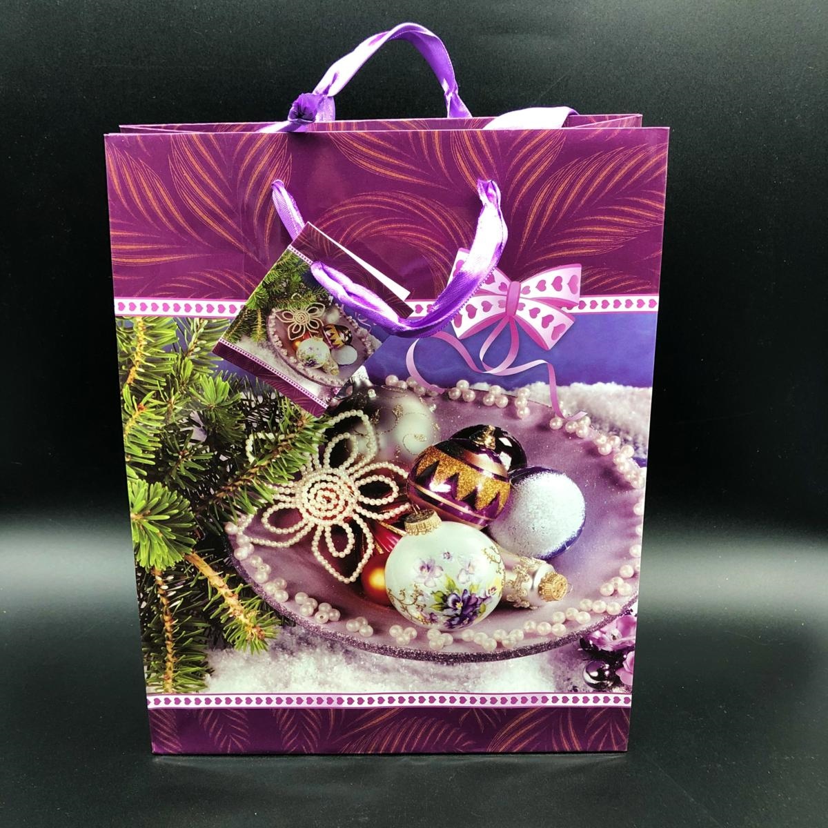 SHOPPER NATALE VIOLA GLITTER 25x20x8