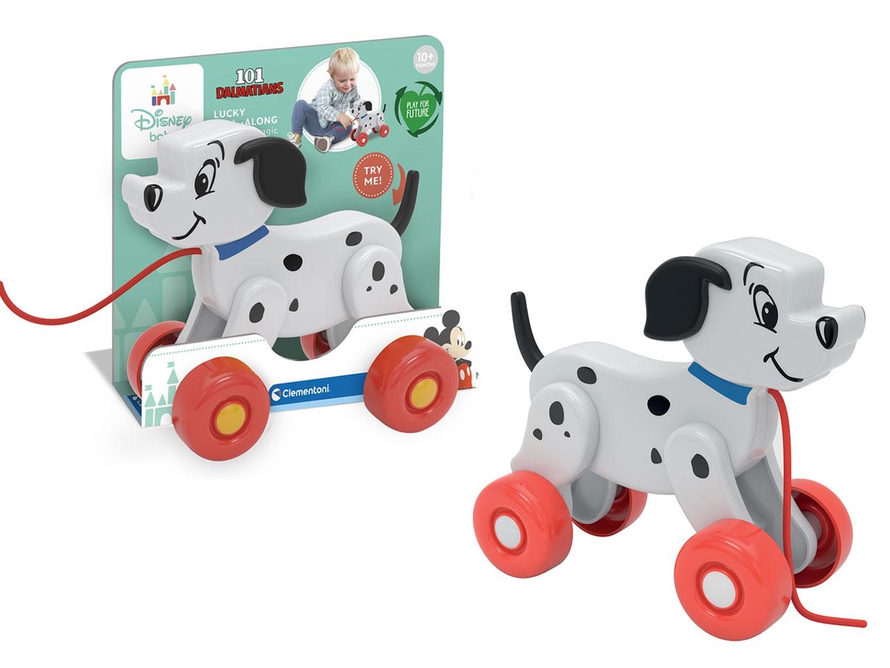 Grazie alle ruote e alla cordicella il bambino potrà giocare accompagnato da Lucky verso mille avventure.